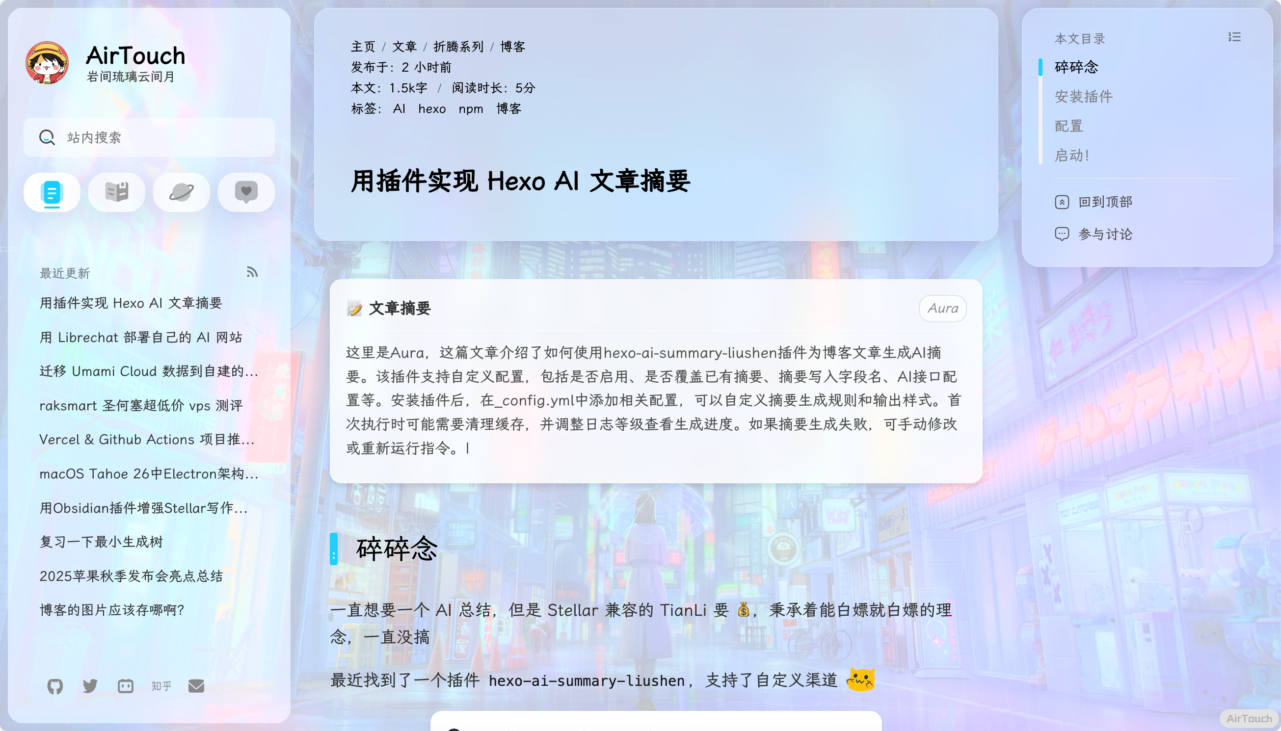 一直想要一个 AI 总结,但是 Stellar 兼容的 TianLi 要 💰,秉承着能白嫖就白嫖的理念,一直没搞