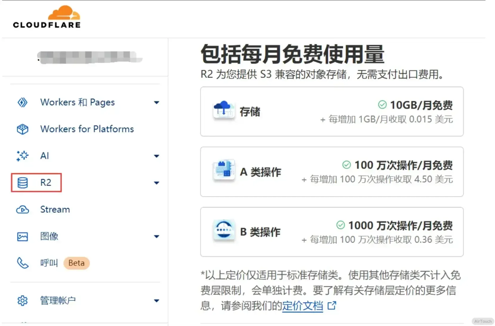 虽说是购买,但是我们的赛博大善人 Cloudflare 也给了相当多的免费额度,对于一个小博客来说绰绰有余。就算是超出了免费额度,续费也就一角钱一个G,相比腾讯云和阿里云的对象存储要便宜得多。