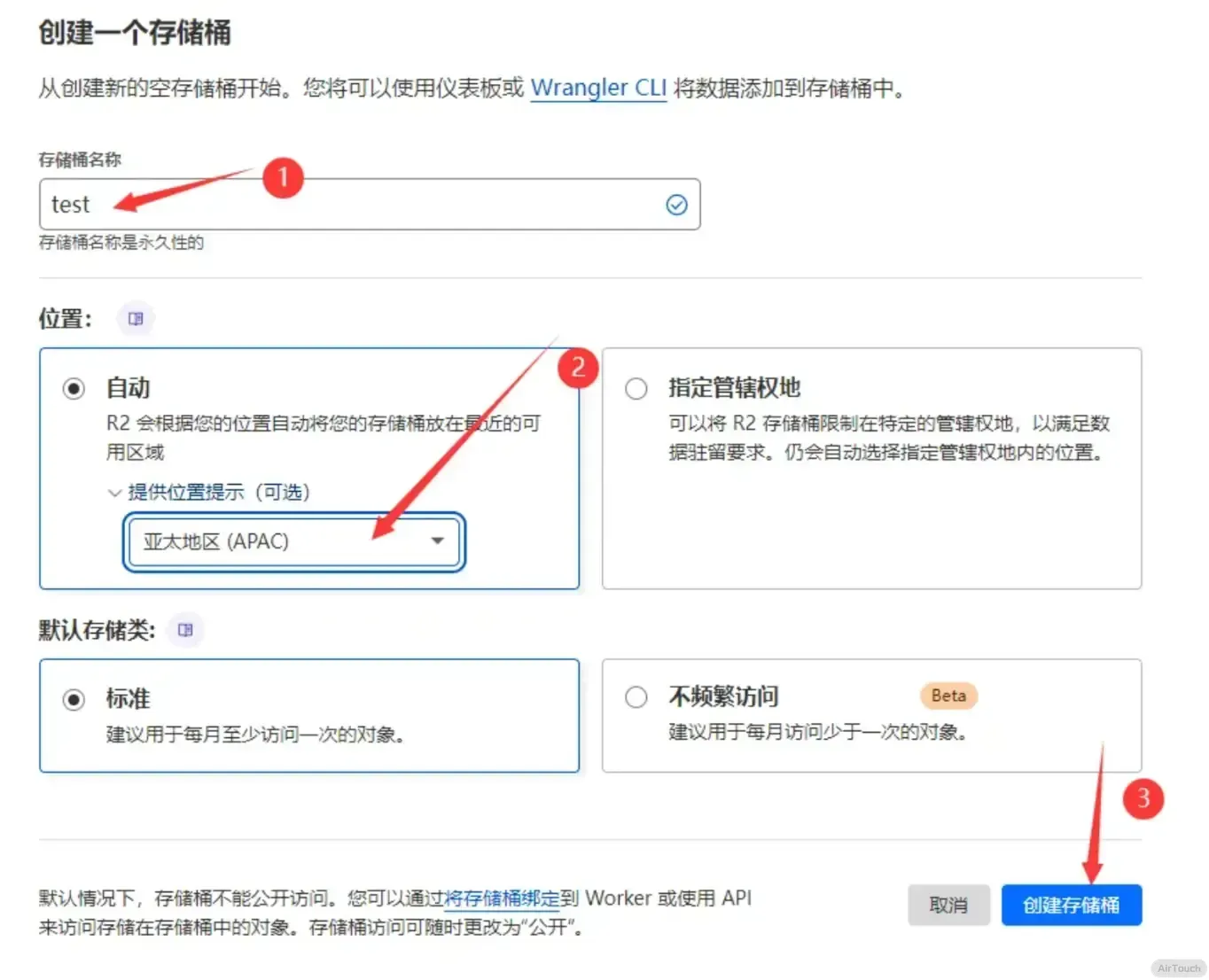 接下来,创建存储桶