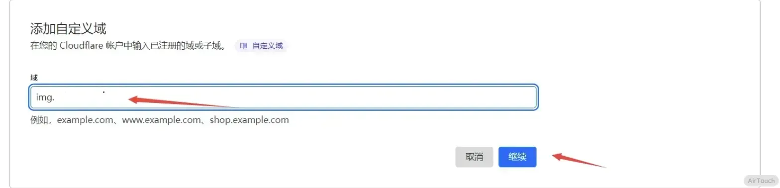 自定义域名就填之前你自定义的域名,若没有自定义域名,不填即可。- 点击