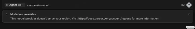 报错信息:This model provider doesn't serve your region. Visit https://docs.cursor.com/account/regions for more information.