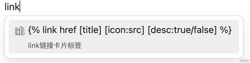 {% link href [title] [icon:src] [desc:true/false] %}|link链接卡片标签|link