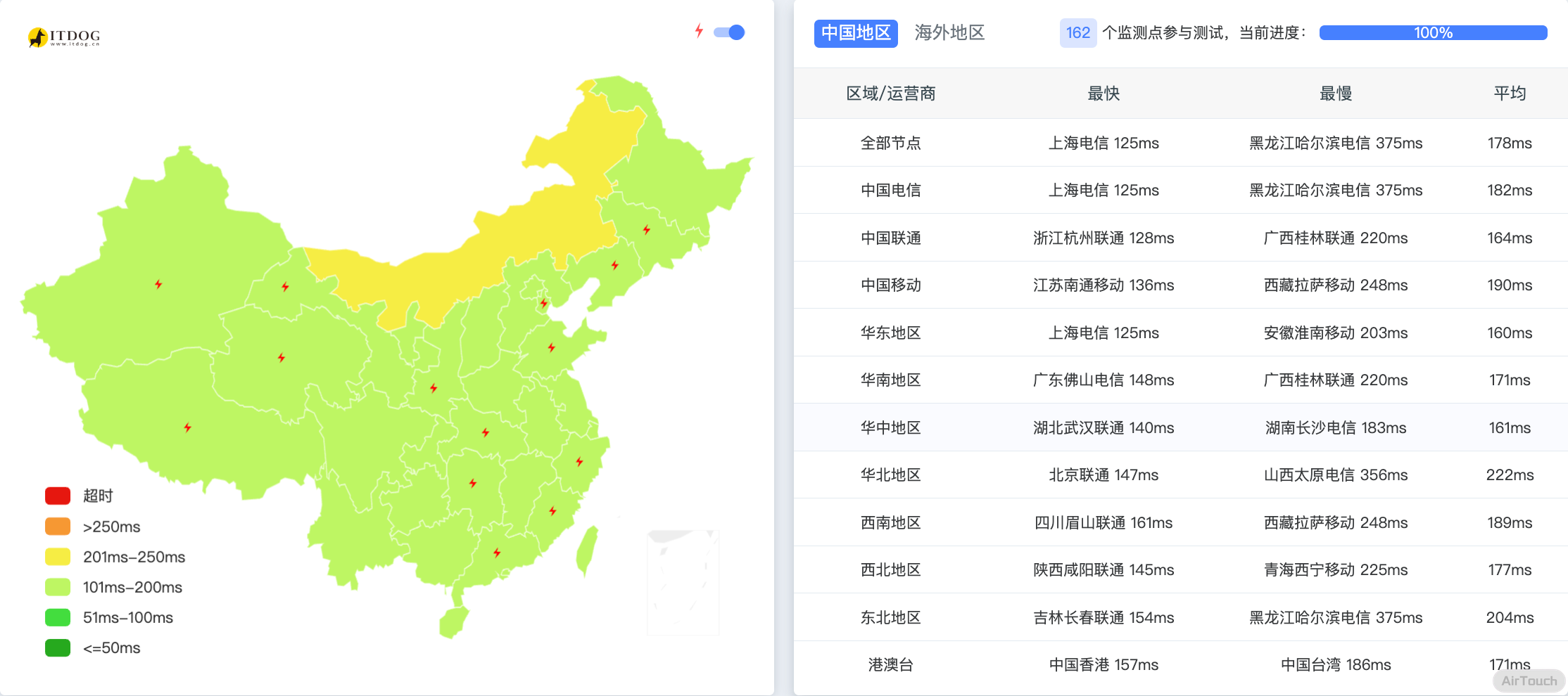 各网站延迟测试