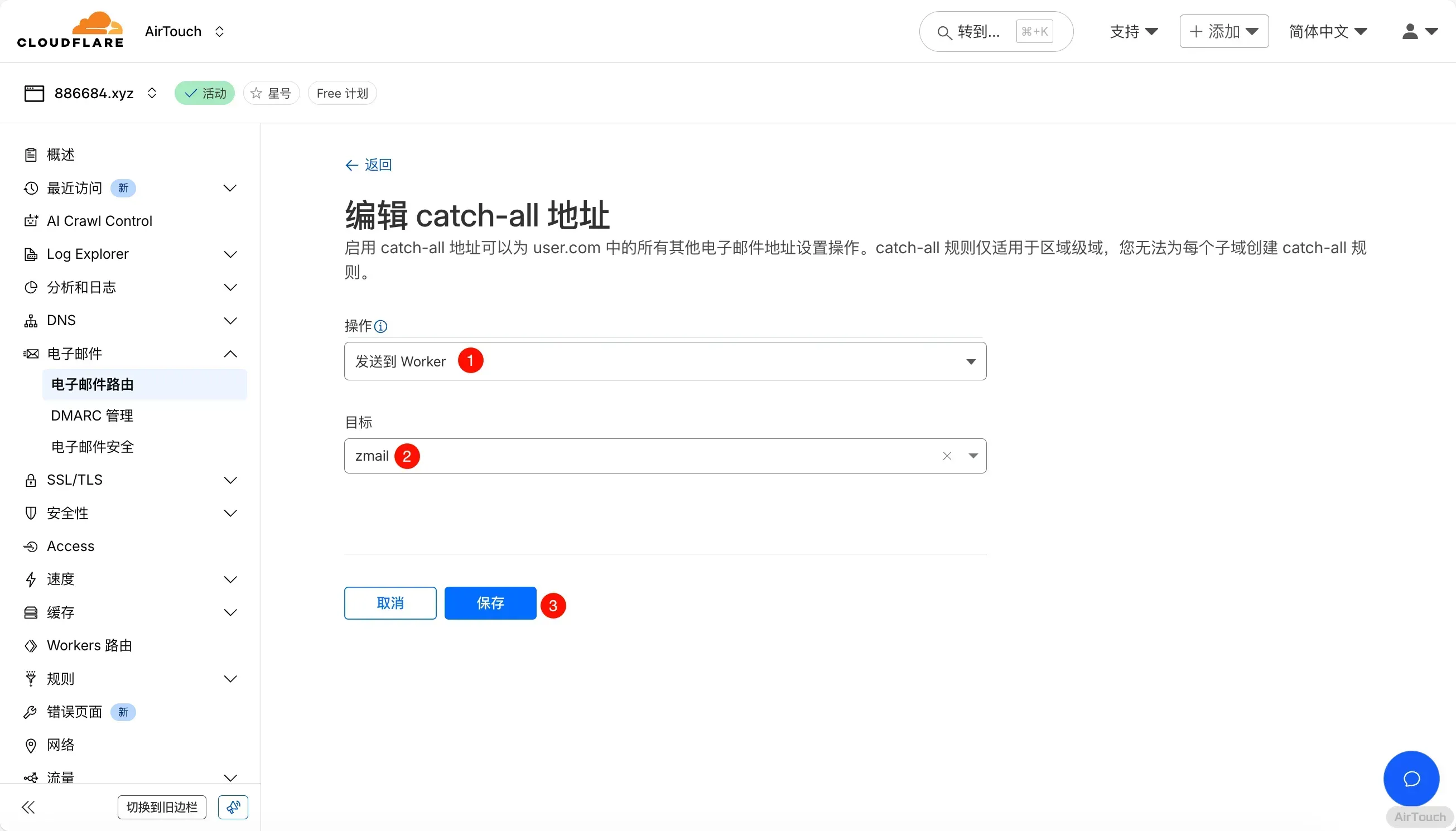 Cloudflare 进入你的域名,进入 电子邮件 -> 电子邮件路由 -> 路由规则 -> 编辑