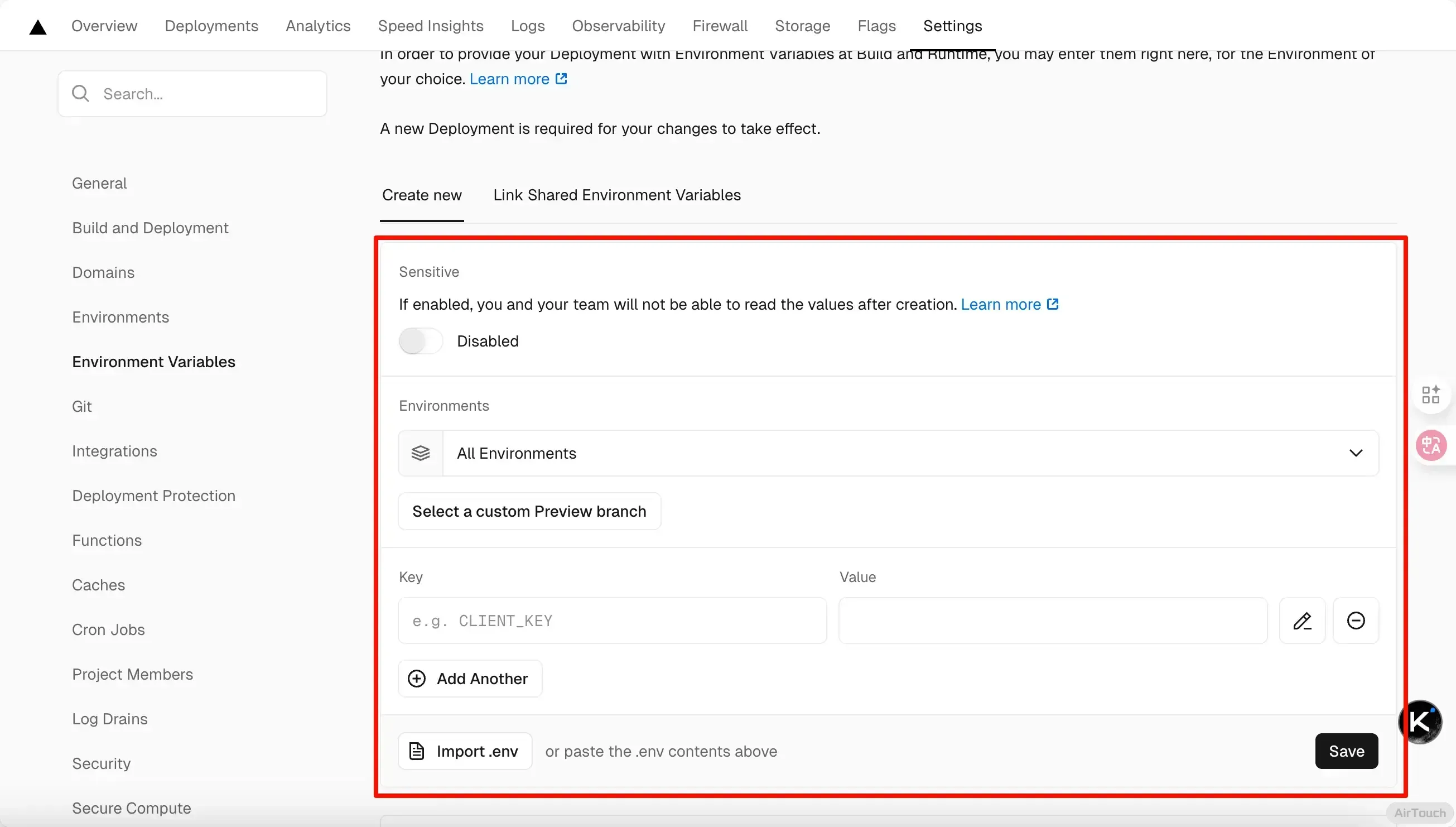 - 点击上方按钮,跳转至 Vercel 进行 Server 端部署。