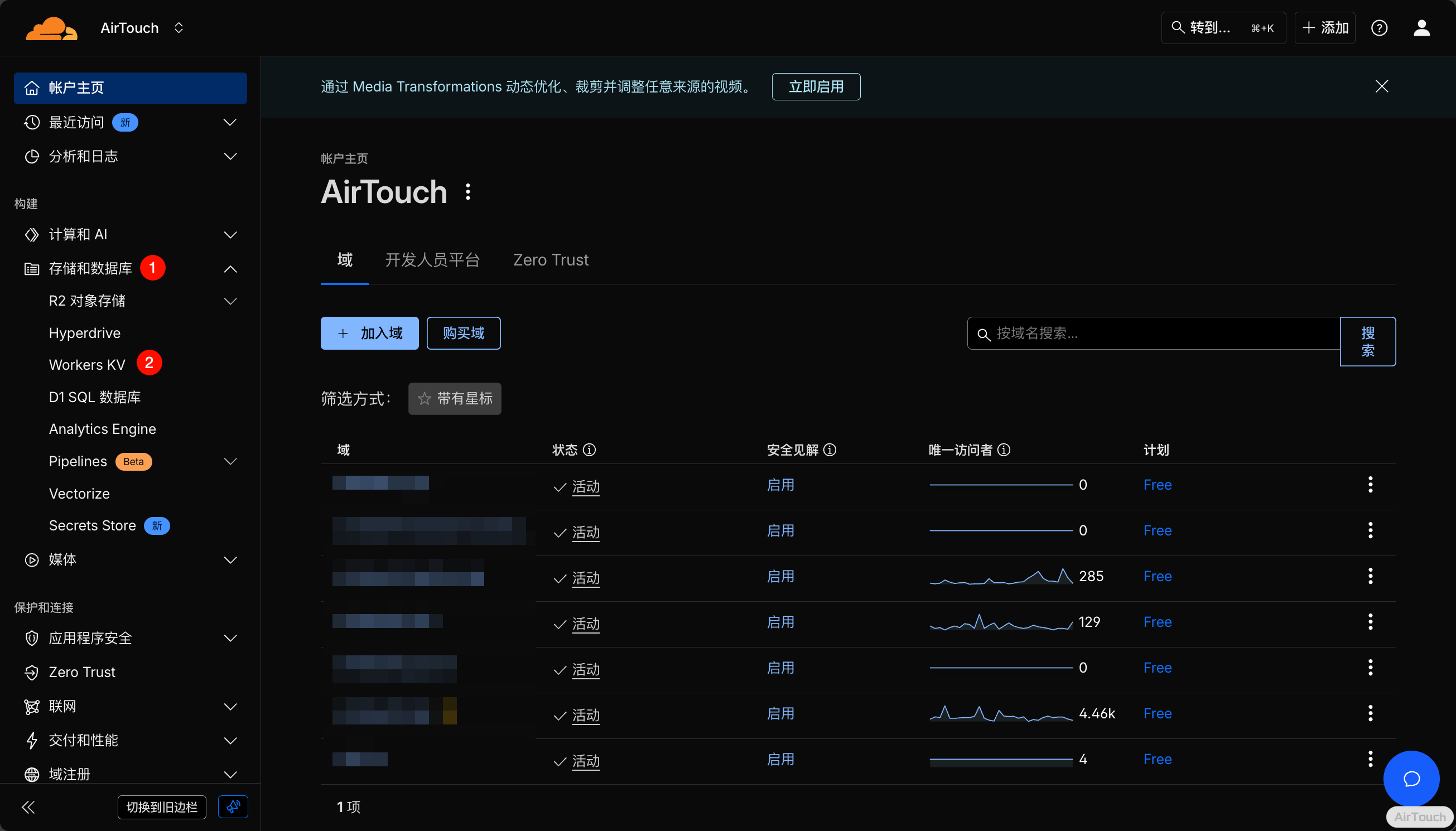 $git clone https://github.com/SharzyL/pastebin-worker.gitThen,打开 Cloudflare,点击左边的 存储和数据库 -> Workers KV