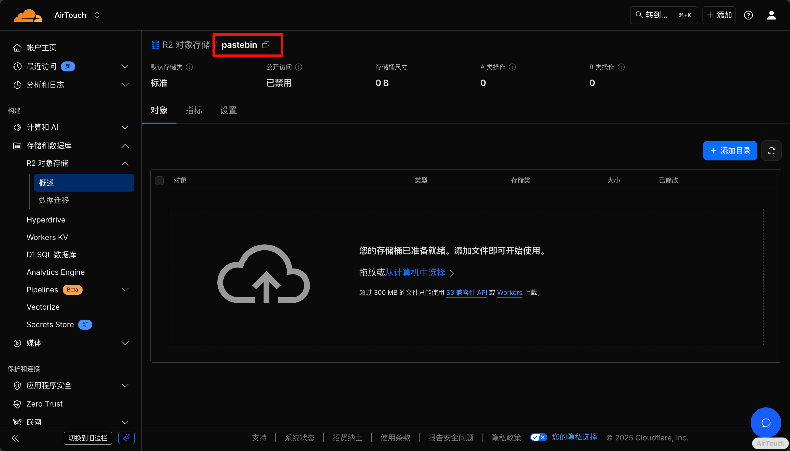 再点击左侧的 R2 对象存储,创建一个桶,复制名字